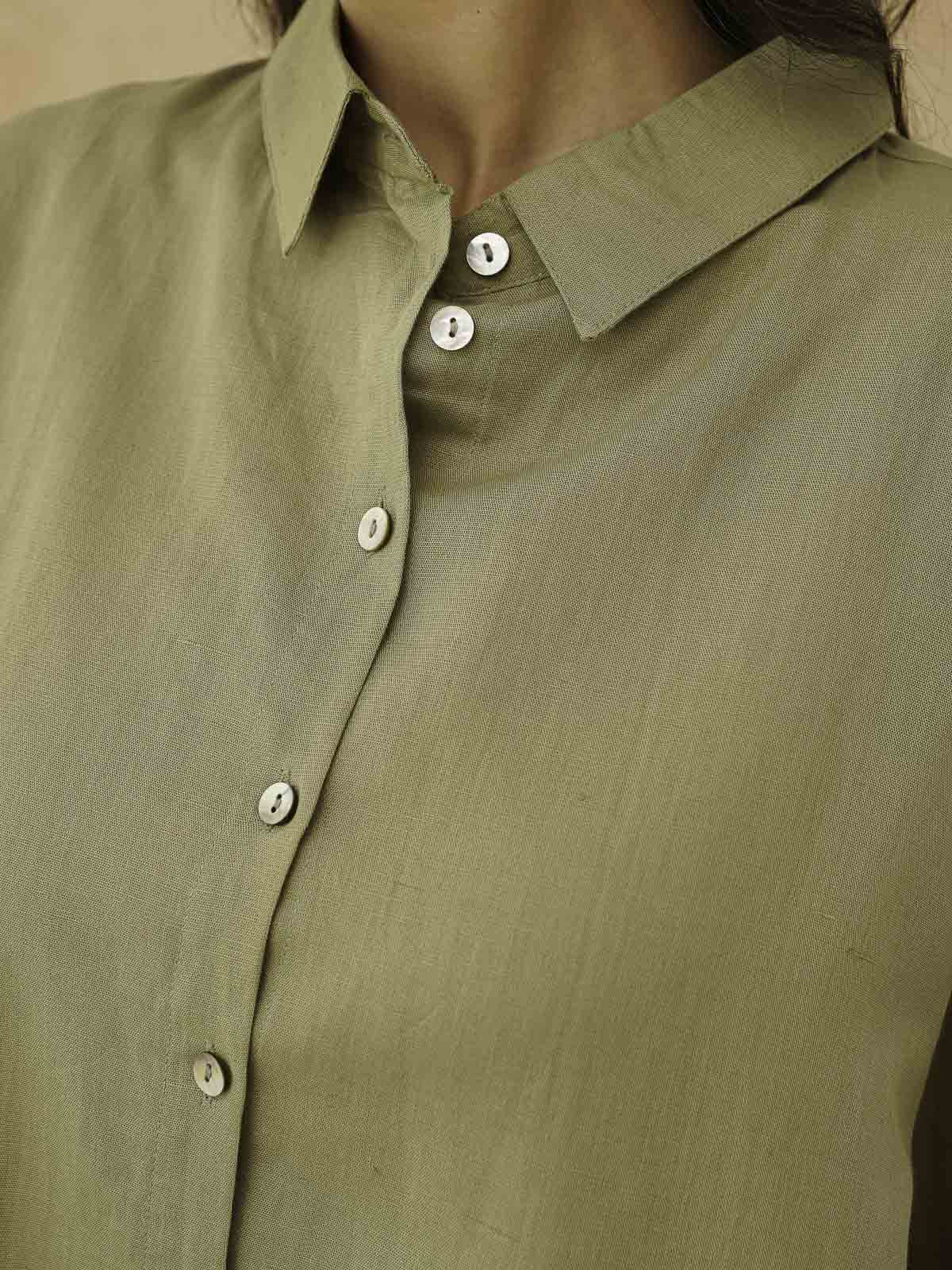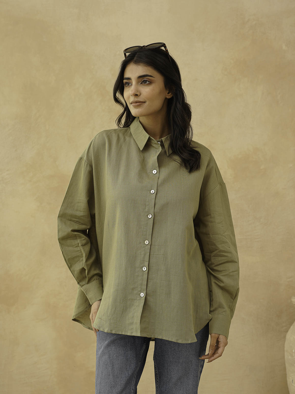 Crafted in breathable linen, this oversized shirt is designed for relaxed summer dressing. Finished with a classic collar, full sleeves, and a button-down front, it’s a versatile staple that works as a standalone shirt or as a light layering piece over tops and dresses. Perfect for warm days when comfort meets understated style