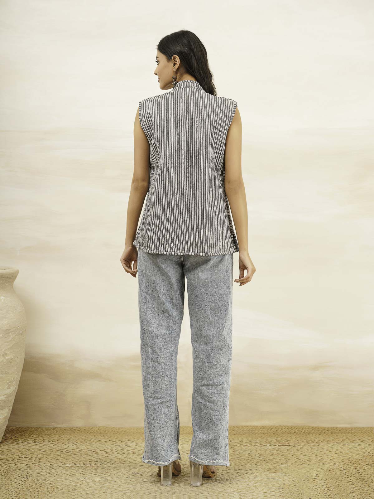 Cotton Printed Sleeveless Quilted Jacket Grey