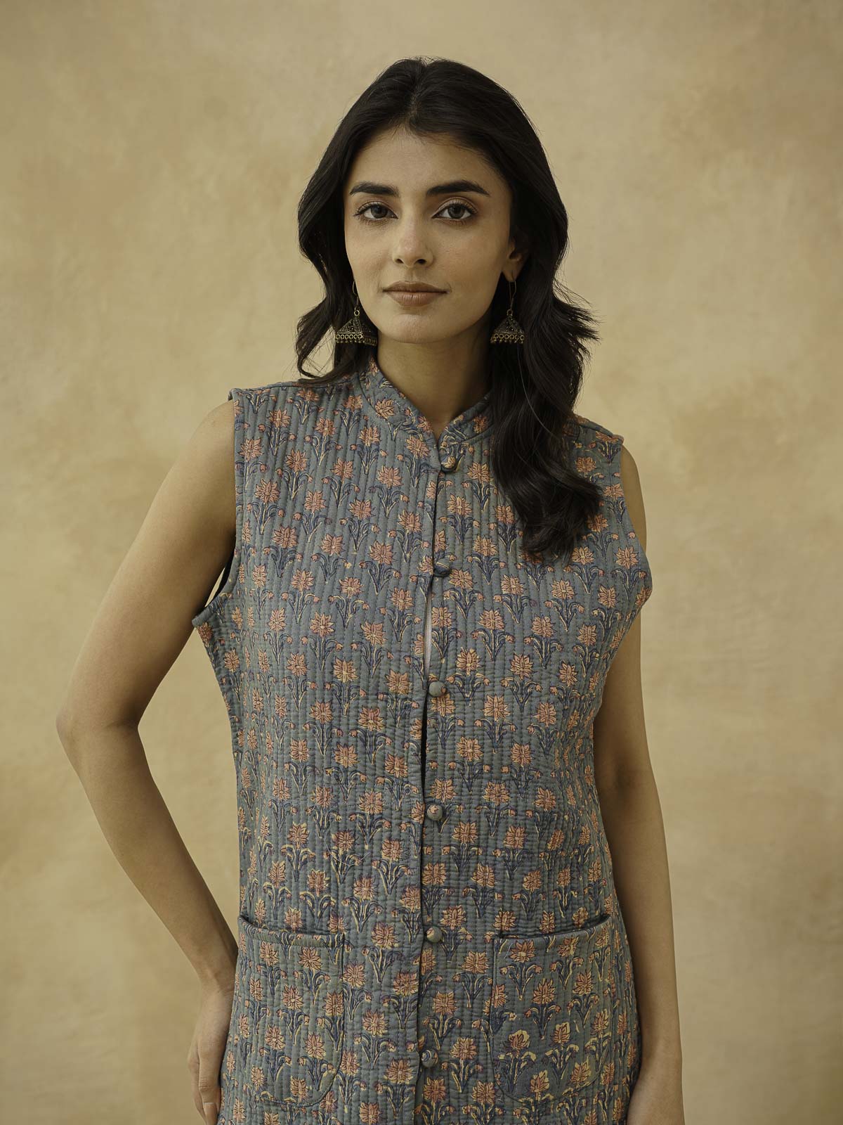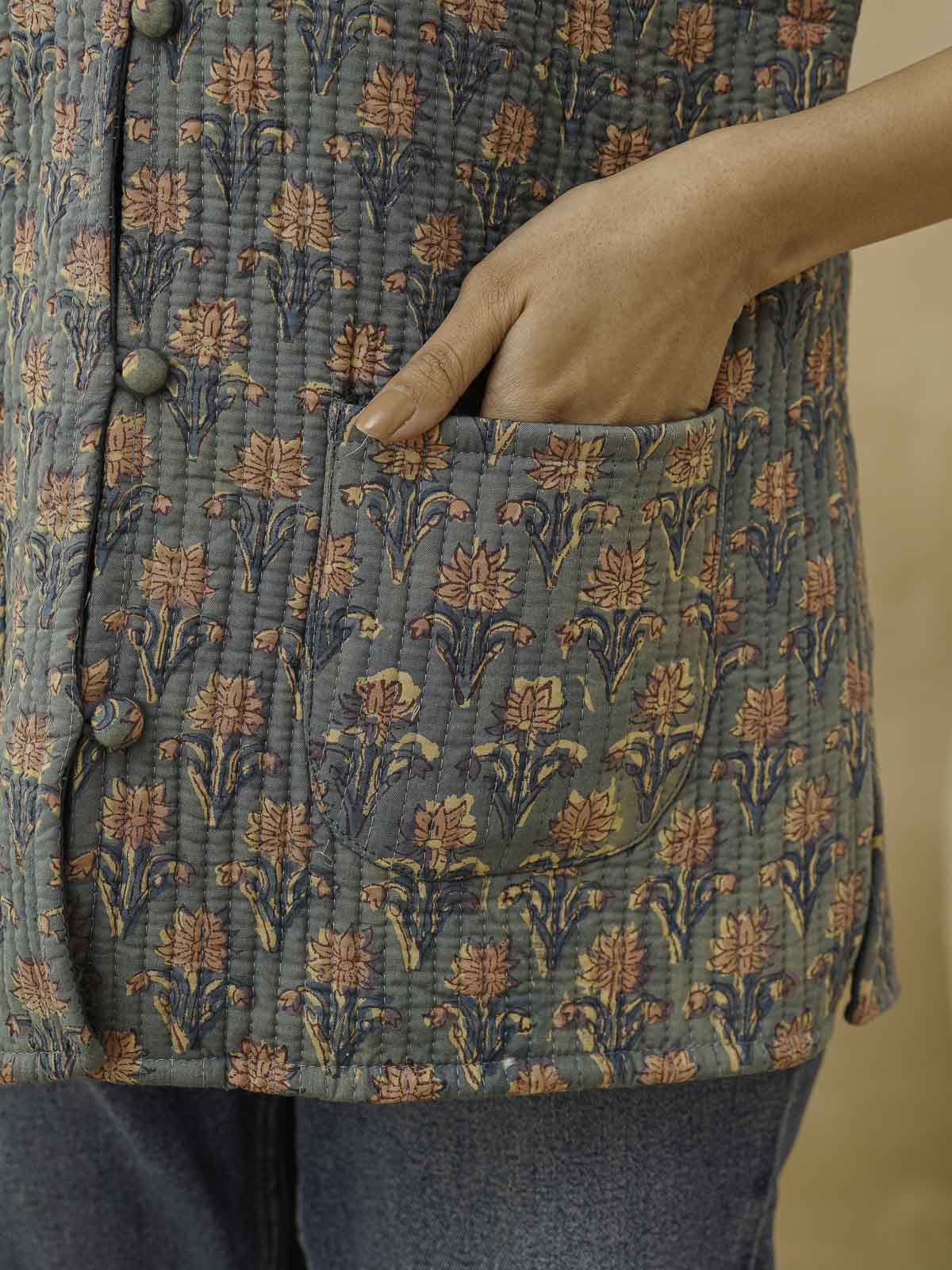 Cotton Printed Sleeveless Quilted Jacket Grey Booty