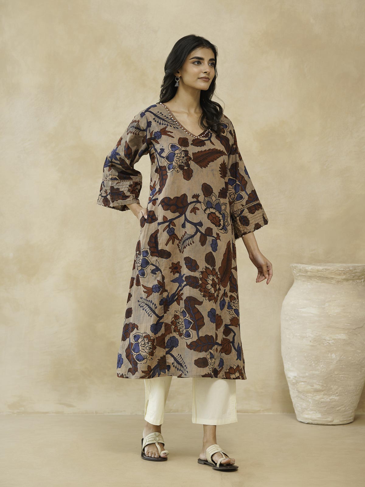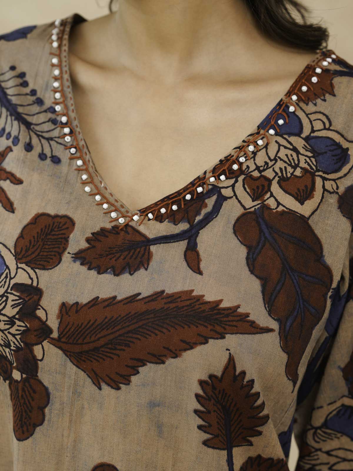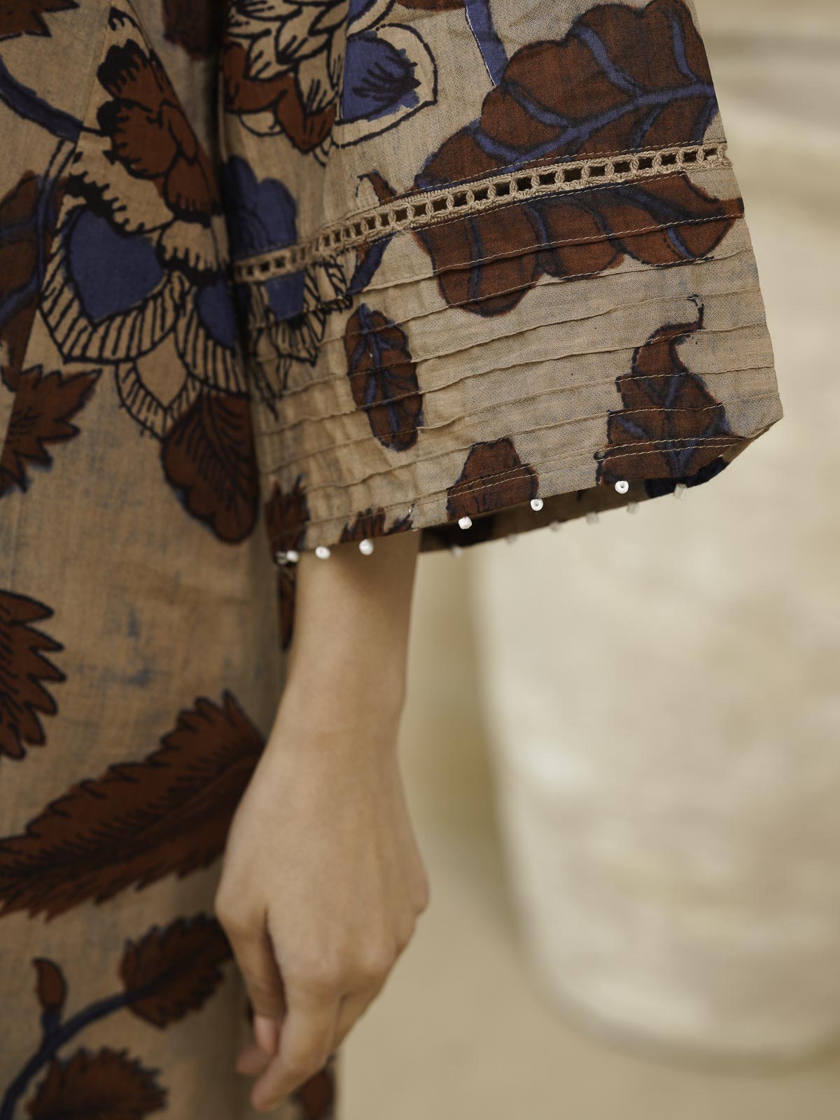 Designed for comfort-first dressing, the Ultimate A-Line Kurta features a relaxed silhouette that moves with ease. Crafted for summer wear, it comes with loose sleeves, delicate pintuck detailing, beads on sleeve andsubtle kantha work along the neckline for a refined finish. Lightweight and breathable, this kurta is perfect for everyday wear when you want comfort without compromising on thoughtful details