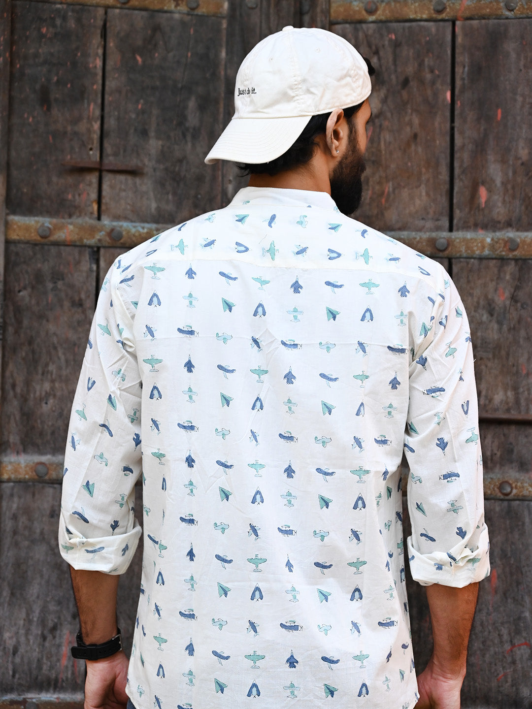Men's Relaxed Fit Cotton Shirt – Full Sleeves - Blue Flower