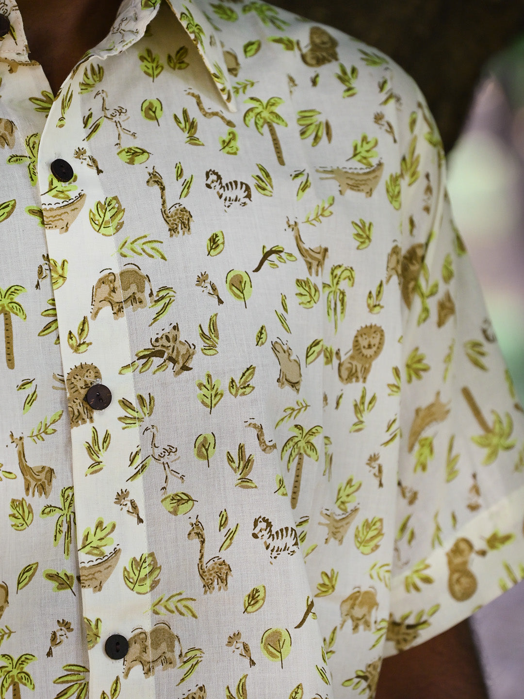 Men's Relaxed Fit Cotton Shirt โ Half Sleeves - White Zoo