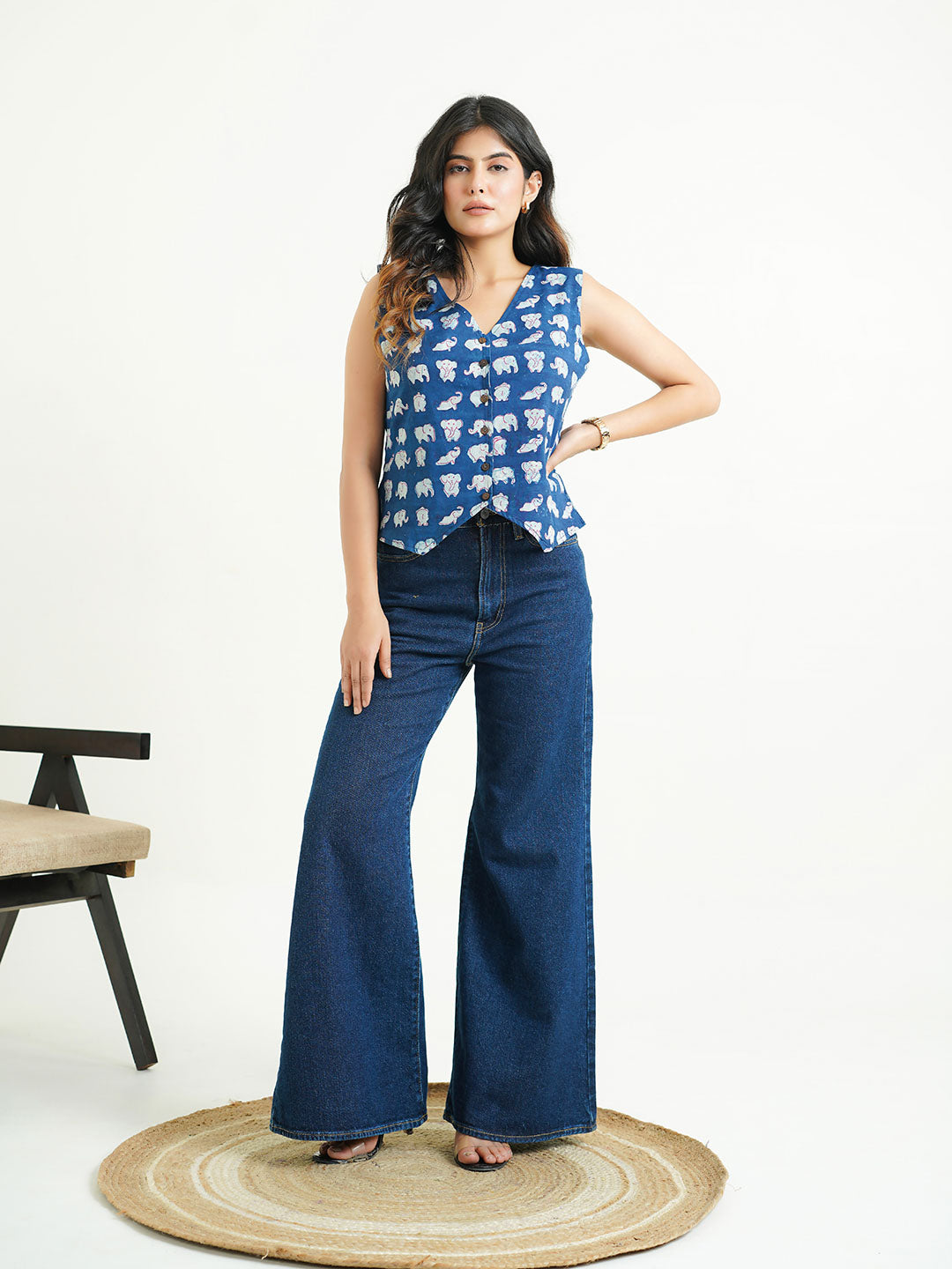 Product Description: Crafted from pure-cotton for all-day comfort, our Kothi top features a V-shaped neckline, a buttoned-up front, and a sleeveless cut for effortless styling.