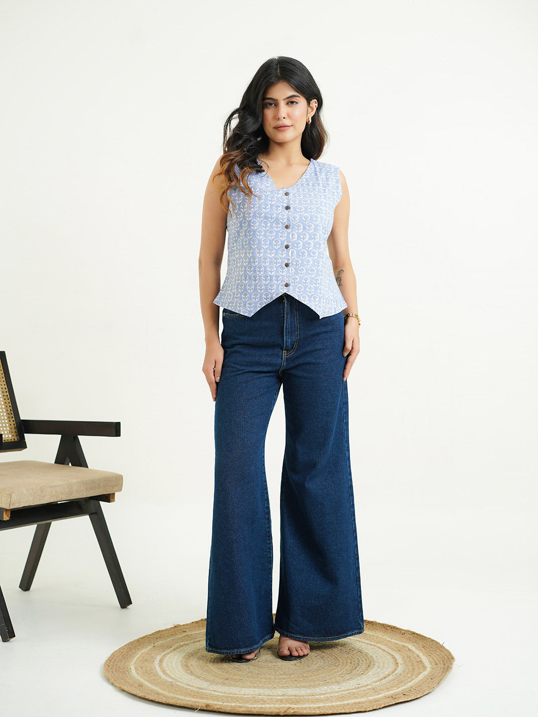 Product Description: Crafted from pure-cotton for all-day comfort, our Kothi top ย features a V-shaped ย neckline, a buttoned-up front, and a sleeveless cut for effortless styling.